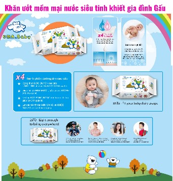 Khăn ướt mềm mại nước siêu tinh khiết gia đình Gấu